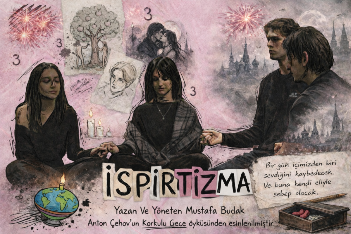 Anton Çehov’un “Korkulu Gece” öyküsünden esinlenilen İspirtizma, gerçeklik algısını zorlayan, seyirciyi psikolojik bir gerilimin içine çeken tek perdelik bir oyundur. Yalnızca bir korku hikâyesi değil; insanın kendi iç dünyasıyla olan çatışmasını sahneye taşıyan psikolojik bir anlatıdır. Oyun boyunca seyirci, karakterlerle birlikte “gerçek” olanın ne olduğunu sorgulamaya davet edilir. Aşk, yalnızlık, korku ve yüzleşme temaları etrafında şekillenen yapısıyla, çağdaş tiyatronun psikolojik gerilim damarına güçlü bir katkı sunuyor.